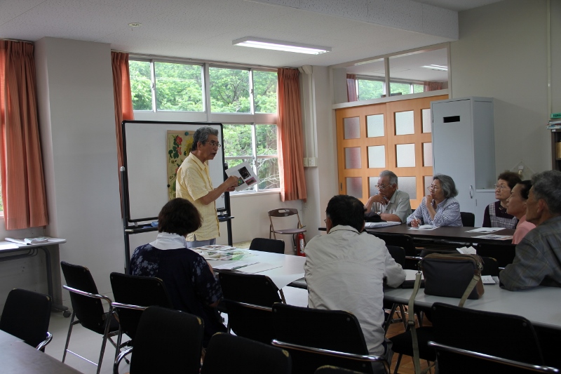 2014年6月15日 杉浦孝蔵先生をお招きして山菜アドバイザーメンバーが関わる「ササユリ保存会」の栽培地を見学、里山での山菜探しの後は昼食を食べながら山菜アドバイザーメンバーの活動報告会もありました。