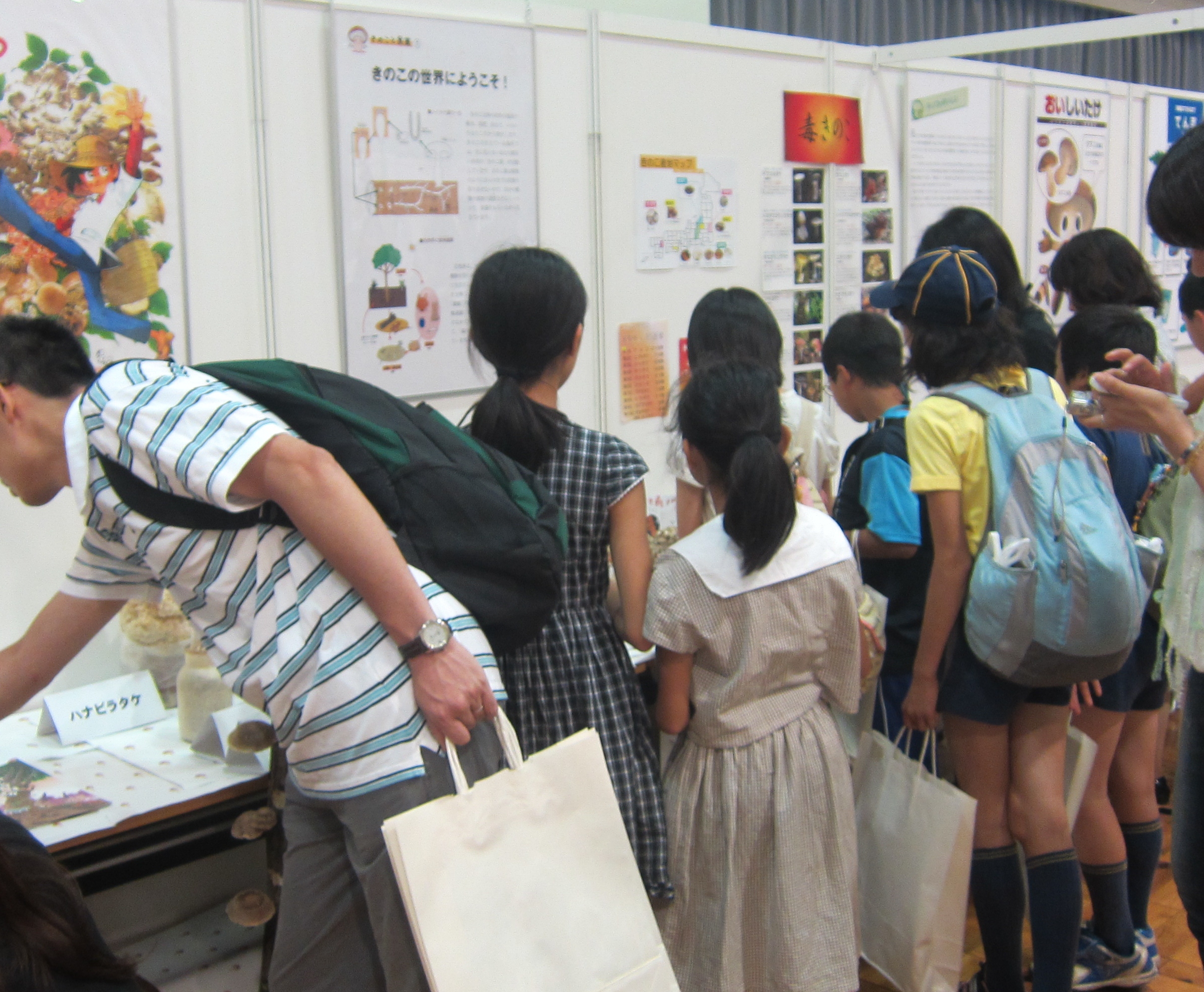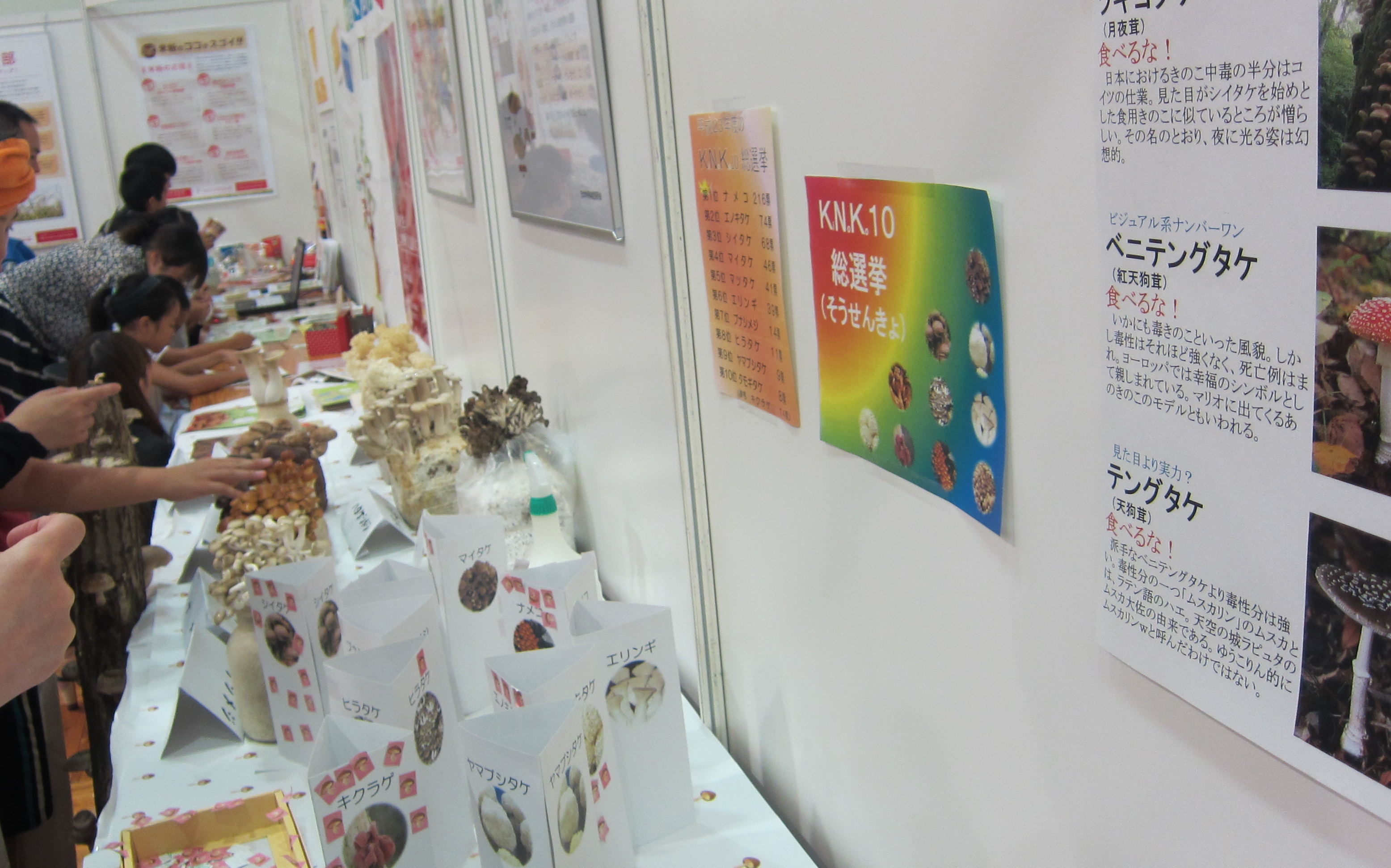 大盛況!子ども霞ヶ関見学デー 2012年8月17日 最終更新日時 : 2012年8月29日 ohno 平成24年8月8日・9日の2日間、霞ヶ関にて「子ども霞ヶ関見学デー」が開催されました。 たくさんの子どもたちがホンモノのきのこの展示や写真のパネルに興味を示していました。「きのこ食べるの大好き!」との声もたくさん聞きました。 昨年に引き続き今年も10種類のきのこによる人気投票「KNK10総選挙」を実施しています。昨年の1位は”ナメコ”でしたが・・・本年度はただいま集計中!結果は追って掲載いたします。