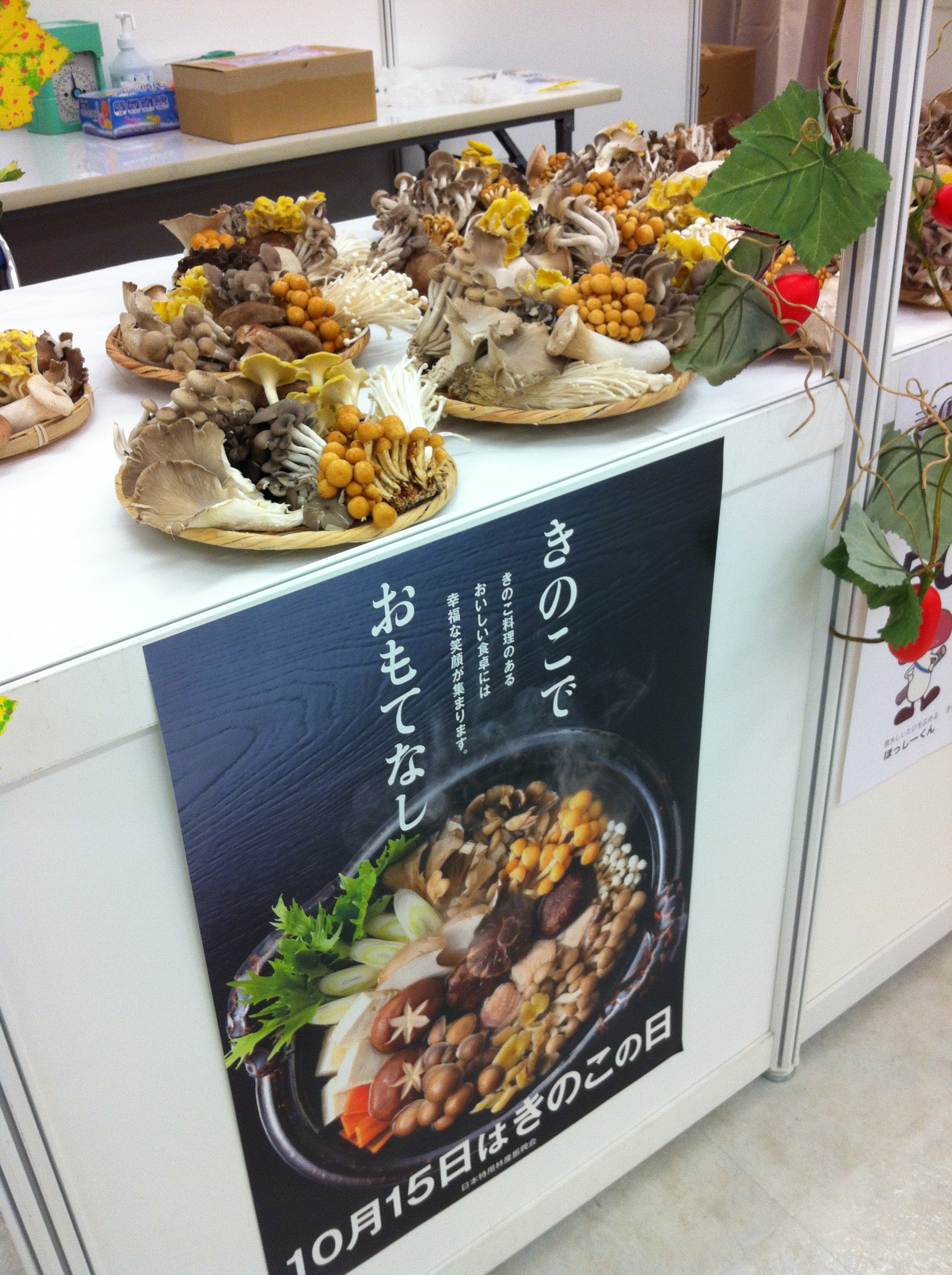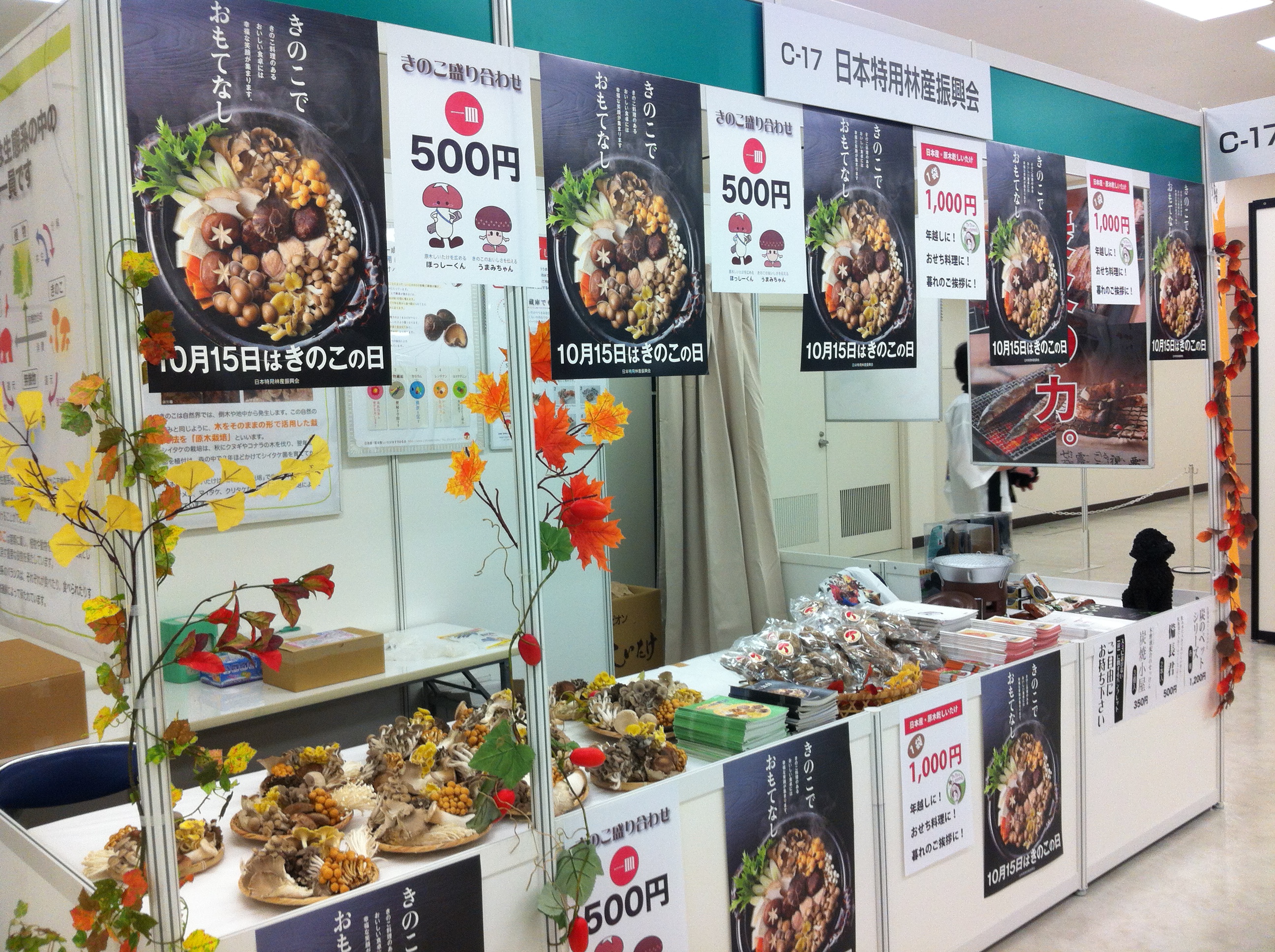 実りのフェスティバルに出展しました 2014年11月7日 最終更新日時 : 2014年11月7日 ohno 平成26年10月31日・11月1日の2日間にわたり、第53回農林水産祭 実りのフェスティバルに出展いたしました。 日本特用林産振興会ブースではかご盛り生鮮きのこ、乾しいたけの販売、パンフレットの配布、炭関連製品の展示・販売を行いました。 会場は東京・池袋サンシャインシティ内で、あいにくの雨天ではありましたが屋内ということもあり、特に2日目はとてもよく売れました。