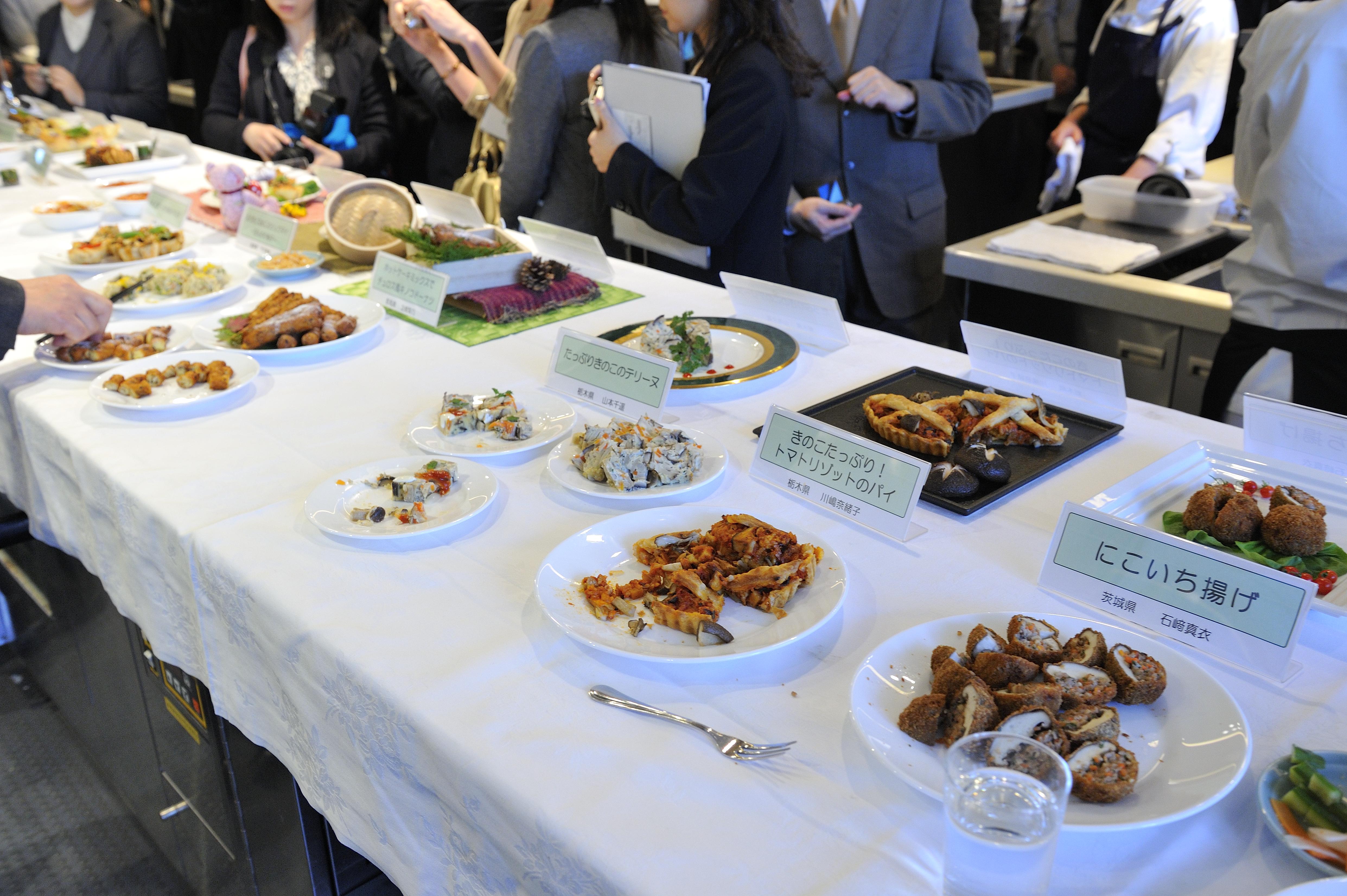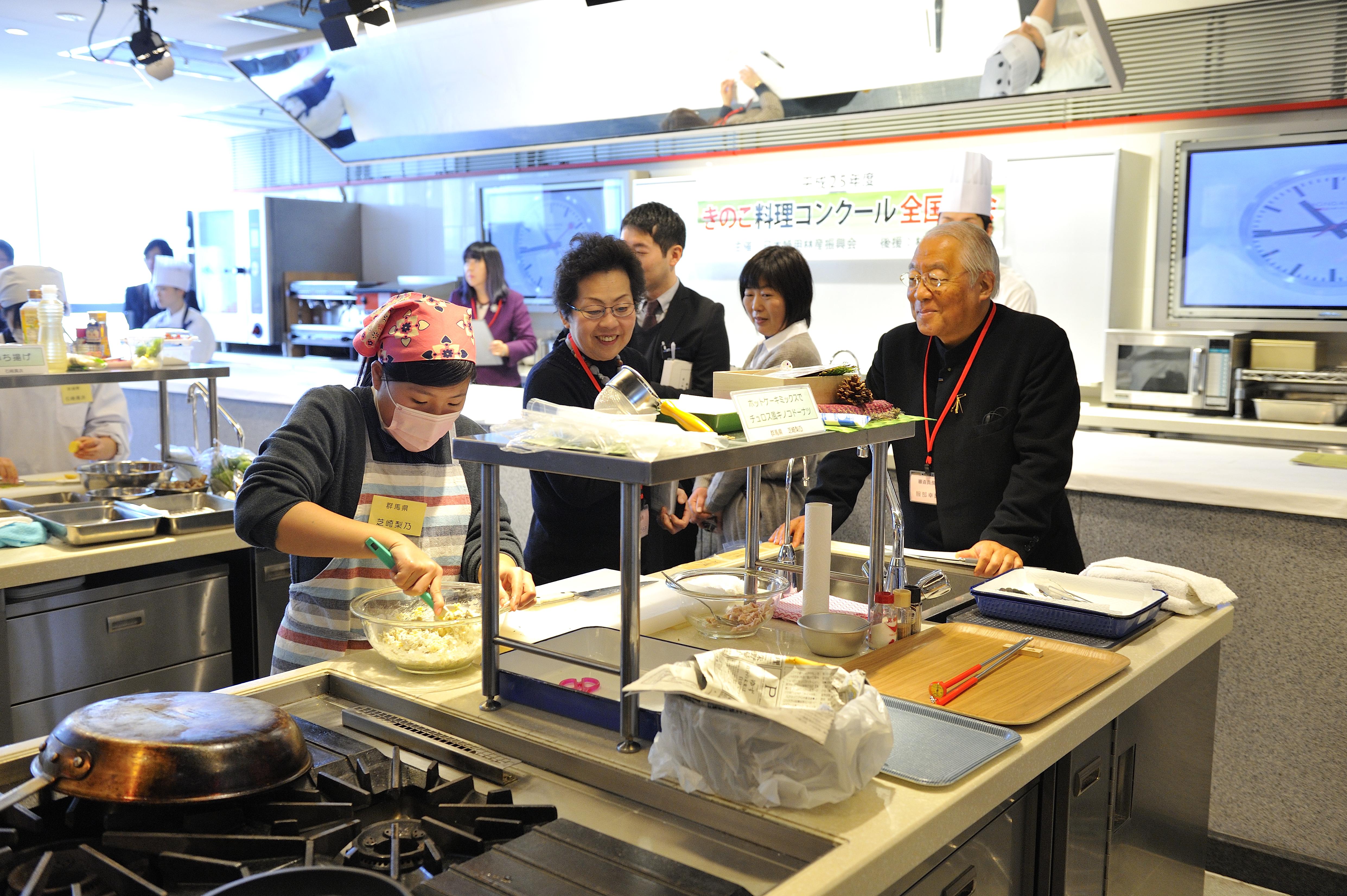 第28回きのこ料理コンクール全国大会開催(平成27年3月4日) 2015年1月15日 最終更新日時 : 2015年1月28日 ohno 第28回きのこ料理コンクール全国大会が開催されます。 本年度は9県より11名の代表者が参加の予定です。県大会がすべて終了し代表者が決定しましたら、追って出場者のご紹介を掲載いたします。 実施日 平成27年3月4日(水) 場 所 服部栄養専門学校(東京都渋谷区) 審査員 服部幸應氏(審査員長)・服部津貴子氏・堀江ひろ子氏・久保木武行氏 主 催 日本特用林産振興会 後 援 林野庁 <昨年度大会の様子>