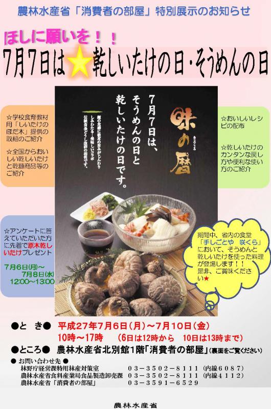 『ほしに願いを!!7月7日は☆乾しいたけの日・そうめんの日』