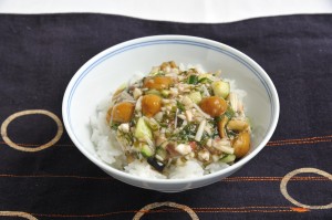 ⑧ 炊きたてのご飯の上にのせていただきます