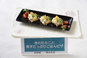⑥フライパンの③の焼いたごはんに、⑤を広げ、その上に④のきのことチーズを乗せ、ふたをしてチーズが溶けるまで5分程度焼く。