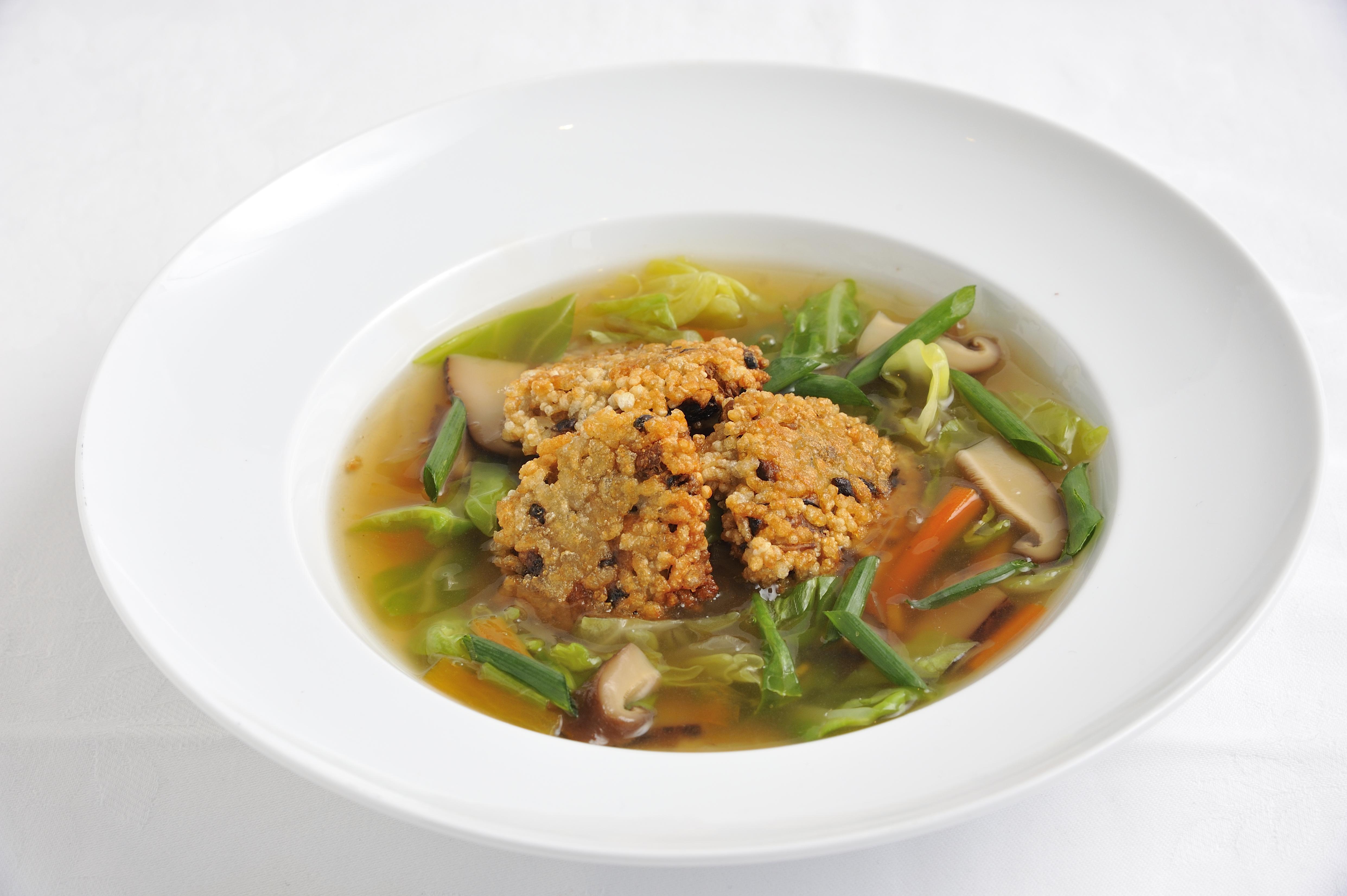 しいたけおこげの野菜あんかけ 2016年4月6日 最終更新日時 : 2022年4月16日 ohno 【愛媛県】 天野 みどり 使用しているきのこの種類:乾しいたけ <材料> 4人分 ・乾しいたけ 45g ・にんじん 100g ・たまねぎ 1/2個 ・卵 1/2個 ・もち米 200g ・しいたけ戻し汁 1ℓ ・片栗粉 適量 ・サラダ油 適量 ・鶏肉ミンチ 170g ・キャベツ 80g ・ネギ 20g ・パン粉 大さじ1杯 ・しいたけだし粉 小さじ2杯 ・うす口醤油 大さじ1杯 ・塩、こしょう 少々 材料費:約1,000円 <作り方> ① 乾しいたけを水で戻す ② 乾しいたけ2枚は野菜あん用に薄く切り、残りは粗みじん切りにする。 ③ にんじん、キャベツ、たまねぎは千切りにし、ねぎは2~3cm長さに切る。 ④ 鶏肉ミンチに塩、こしょうし、ねばりが出るまで混ぜ合わせ、卵、パン粉を加えてさらに混ぜ合わせる。 ⑤ 粗みじん切りにしたしいたけを④に加えて混ぜ合わせ、直径2~3cmのボール状にする。 ⑥ ⑤にもち米をまぶし、薄く平たくして10分間蒸す。 ⑦ 蒸し上がったら、フライパンで両面をカリカリになるまで焼く。 ⑧ だし汁に野菜を入れて煮て、片栗粉でとろみをつけて、しいたけだし粉、うす口醤油で味を調える。 ⑨ 皿に⑦を盛り、⑧をかけて、ネギを散らして完成。 <ポイント> このおこげは、もち米がしいたけの香りを吸って、食感も絶妙な美味しさです。 また、おこげの上からしいたけのだしが利いた野菜あんをかけることで、見た目がとても美しく、しいたけの豊かな味と香りを感じられる、この上なく贅沢な一皿に仕上がっています。