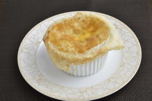 散らしてパイ生地で空気が入らないように包み、220℃のオーブンで焼き色がつくまで焼き上げる。