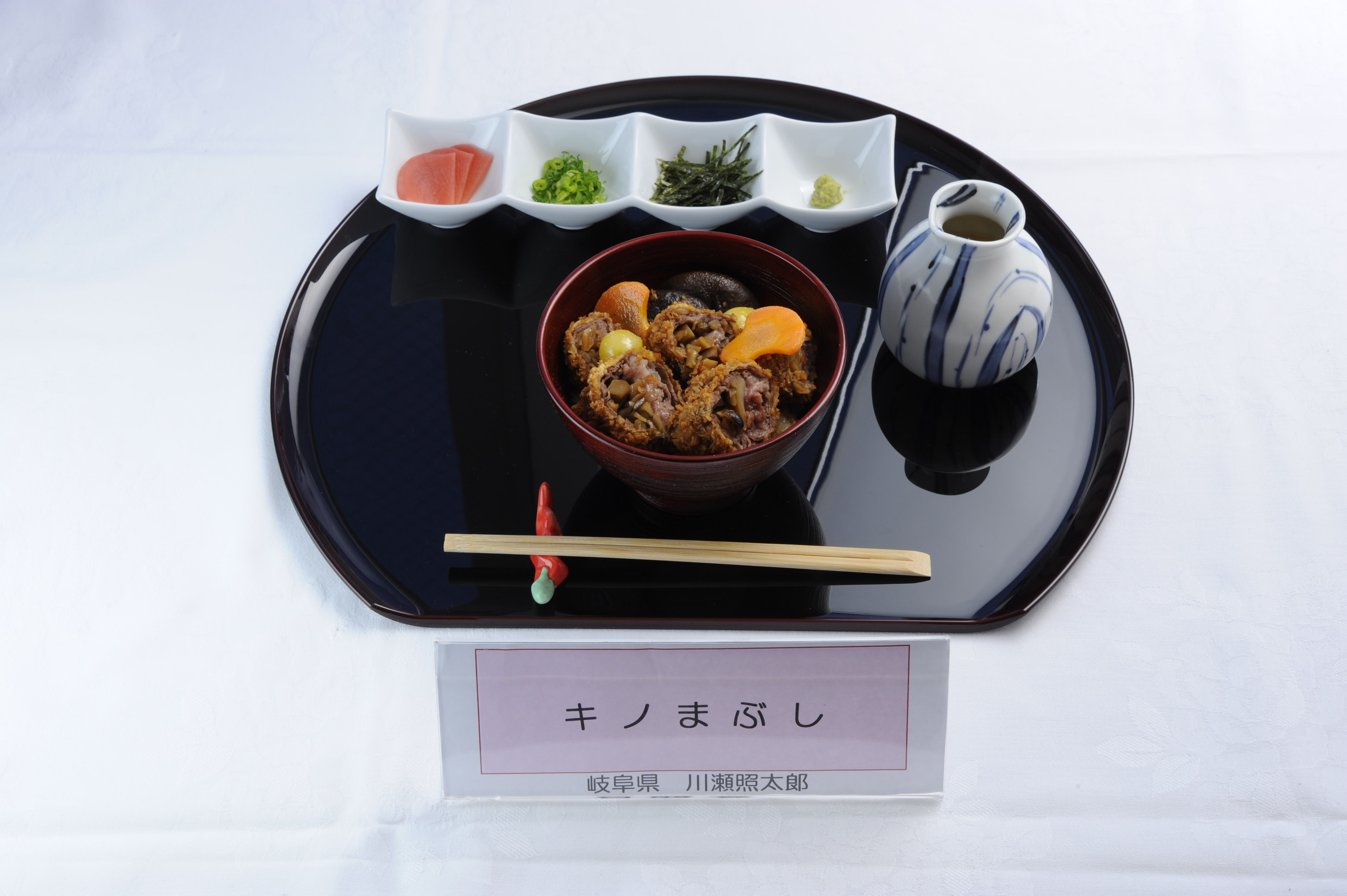 地産地消を意識して、大半の食材(きのこ類・人参・銀杏・葱・牛肉・米)に岐阜県産品を使用しました。