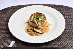 <ポイント> ステーキ部分に肉を使わないで、すべてきのこで仕上げました。 |