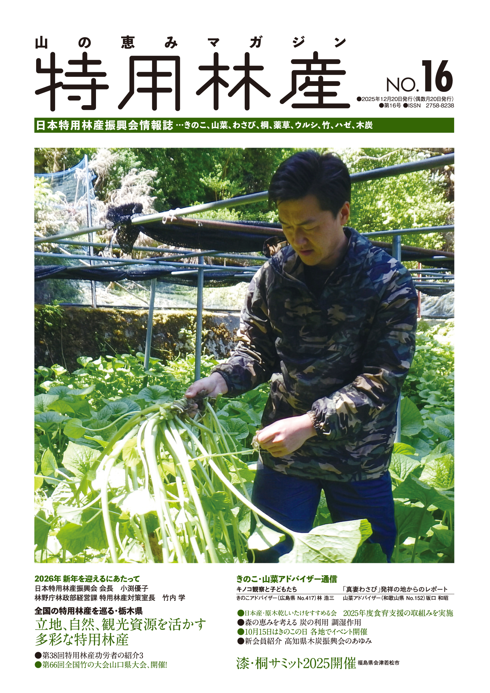 今号冒頭では会長の新年ご挨拶を掲載、「全国の特用林産を巡る」は栃木県です。