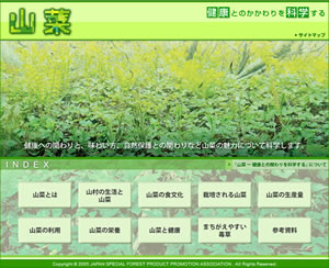 山菜は、山野に自生する菜です。栽培されるものが多くなった今日でも、自然の中で手を加えずに生育するものは山菜と呼ばれています。栽培される野菜が少な かった昔には全ての人にとって、また耕地の少ない山村では最近まで、重要な食料でありました。現在では、懐かしい素朴な味わいや、季節感を求める多くの人 により山菜採りがブームだともいわれています。